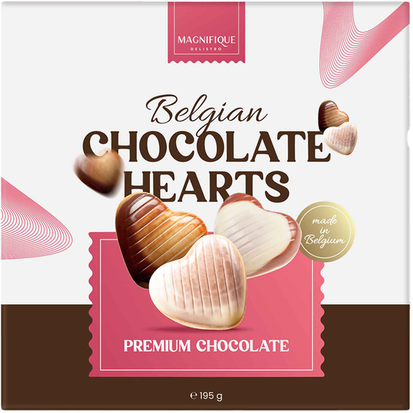 Magnifique Delistro Belgian Chocolate Hearts zijn chocolaatjes in de vorm van hartjes, gemaakt van romige Belgische chocolade. Ze hebben een zachte bite en zien er feestelijk uit. Leuk om te delen of als zoete traktatie voor een speciaal moment.