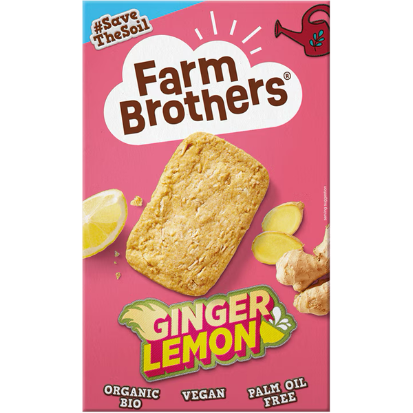 Farm Brothers Gember Citroen Koekjes zijn knapperige koekjes met een frisse combinatie van gember en citroen. De smaak is licht kruidig met een frisse twist. Lekker bij koffie of thee, of als zoete snack tussendoor.