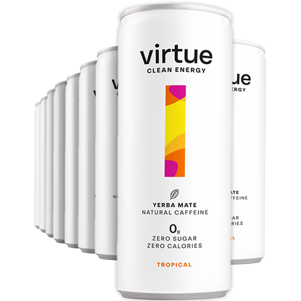 Virtue Clean Energy Yerba Mate Tropical is een natuurlijke energiedrank met een frisse, tropische fruitsmaak. De drank is gemaakt op basis van yerba maté en bevat ongeveer evenveel cafeïne als een kopje koffie. Licht en verfrissend, ideaal voor een energiek moment tussendoor. Dit product bevat zoetstoffen. Dit product bevat statiegeld, enkel in te leveren in Nederland.
